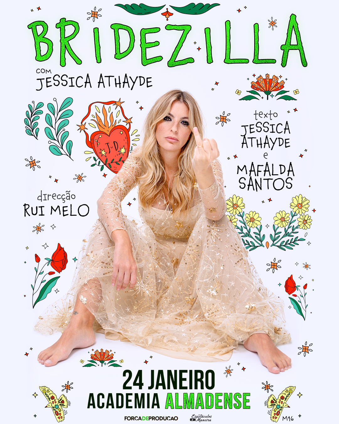 Conhecida do público pela sua carreira na televisão, Jessica Athayde tem vindo a explorar novas formas de expressão artística. Dos livros que escreveu, passando pelo seu blog pessoal Jessy James, até às suas participações cada vez mais frequentes nos palcos de teatro, apresenta agora Bridezilla, revelando uma nova faceta enquanto actriz e autora, mais pessoal e, claro, com muito humor à mistura.